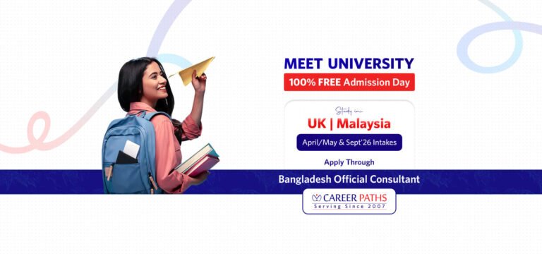 Career Paths is one of the most trusted and reliable study abroad consultancies in Dhaka, Bangladesh, helping students achieve their higher education dreams since 2007. With partnerships in 20+ countries including the UK, USA, Canada, Sweden, Malaysia, and more, we provide students with a wide range of opportunities to study at top-ranked universities.